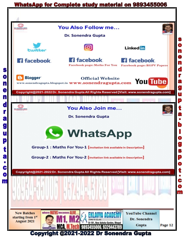 Topics:: Differential Equation of first order & first degree: Formation of DE, General solution, Particular solution, Variable Separable form, Homogeneous differential Equation, Non-Homogeneous Differential Equation, Linear Differential Equation, Bernoulli's Equation, Exact Differential Equation, Non-Exact Differential Equation.
